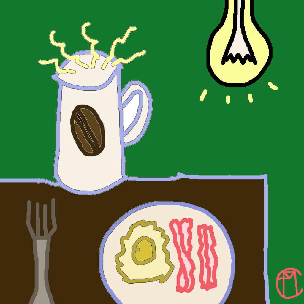 This is another on that started as a finger painting on my phone. I transferred it to GIMP2 and added more elements to the image to make the 9:16 phone art into 4″x4″ computer art. The colors are mostly just bucket fills and you can see the little white and black stokes along the edges of the fill if you look close enough. I didn’t try to make it large enough for sale online but it’s the perfect size for a square photo print. I’m hand drawing my artist marks lately instead of reusing copy and pastes like I was in the habit previously. Enjoy your morning inspiration.