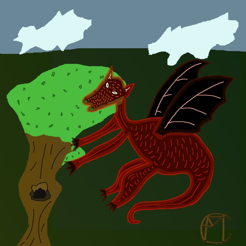 I give you a young red dragon practicing his melee with a tree as big as he is.