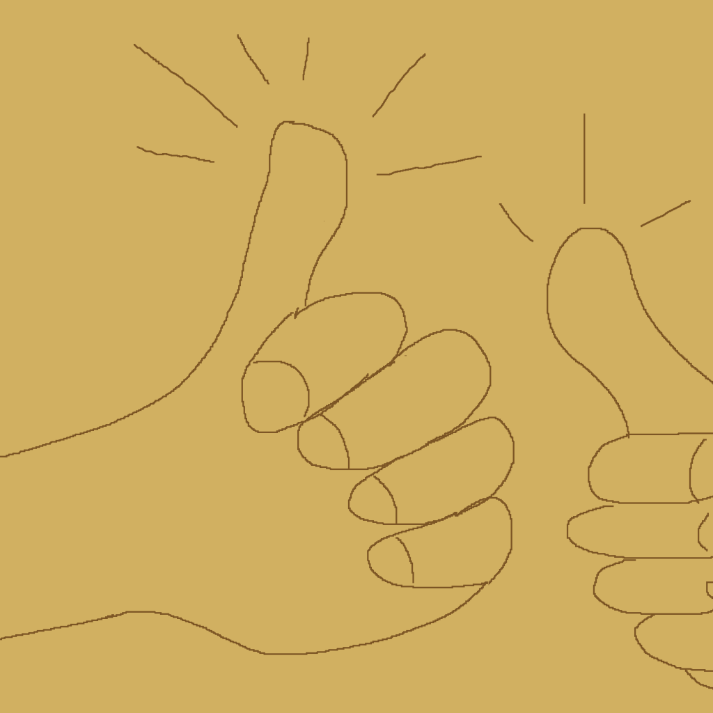 A simple and fun drawing of hands with thumbs up and accent marks. (GIMP2)