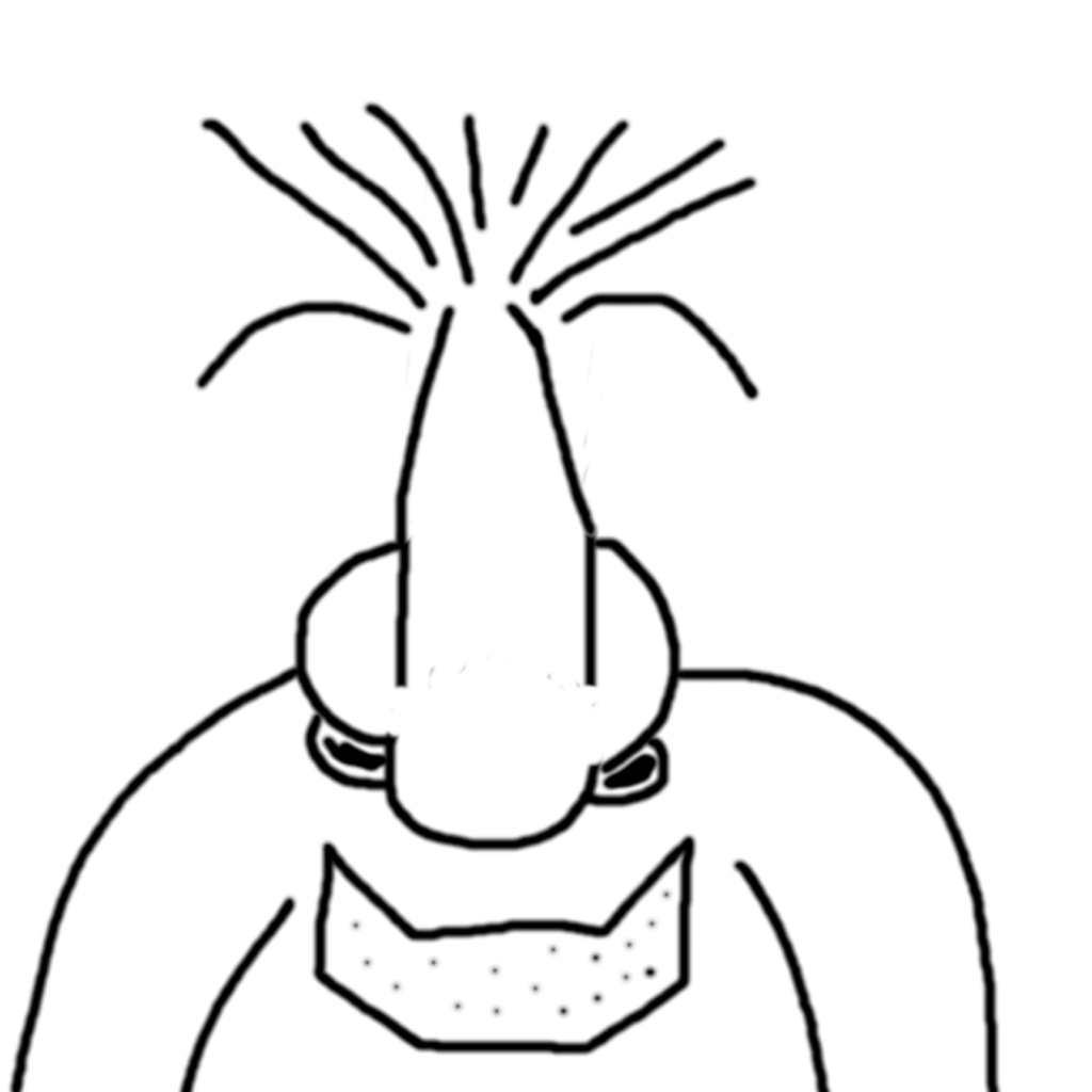 Nose Alien: I looked up how to draw a nose, read the directions, then closed the webpage and opened my graphic program. I started drawing a nose but the nostrils looked like eyes to me and the whole thing just looked like a strange head. So I gave it hair and shoulders. I finished with a spikey mouth that had some painted dots on it. (GIMP2)