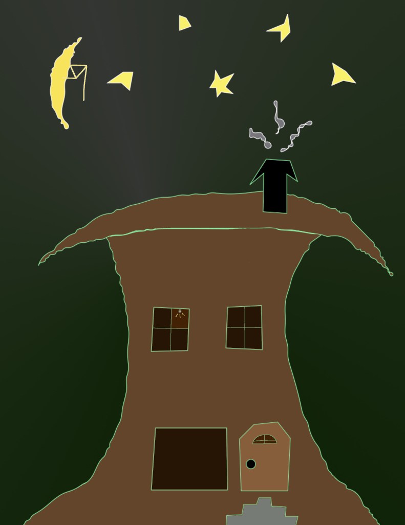 I did not begin this house with the end in mind. As I added elements it became more disjointed. (Composite, artist mark)