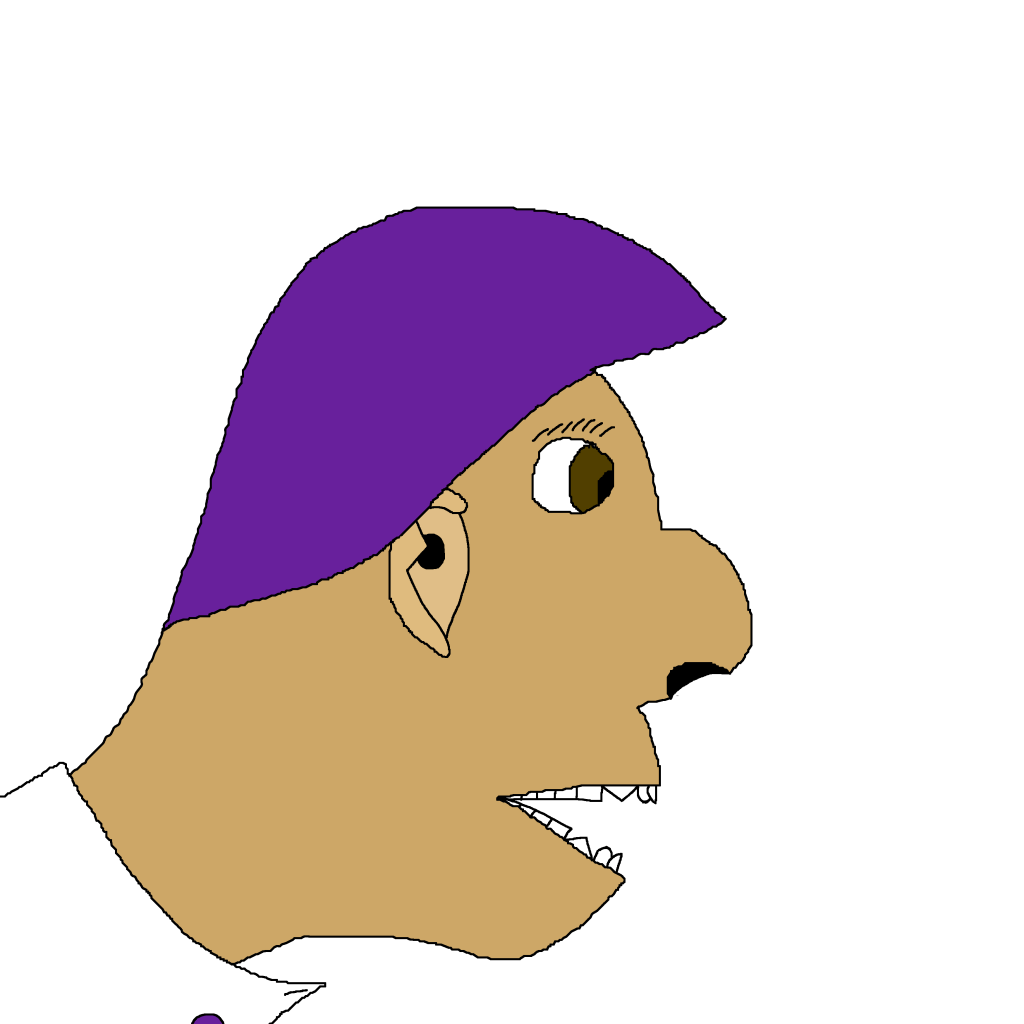 A side view of a face with purple hair and a white collar. (GIMP3)