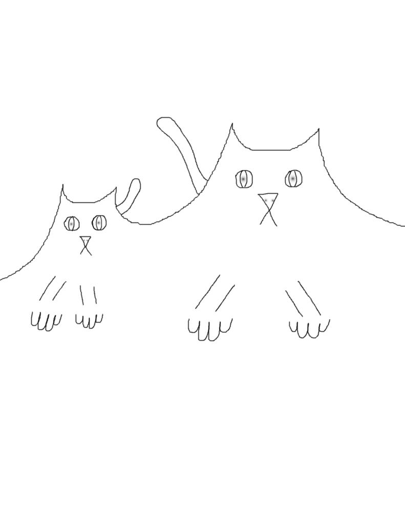 Five swoops make the ears of the cats simultaneously the peaks of mountains. Eyes, noses, tails, and paws are just decorations. (GIMP)